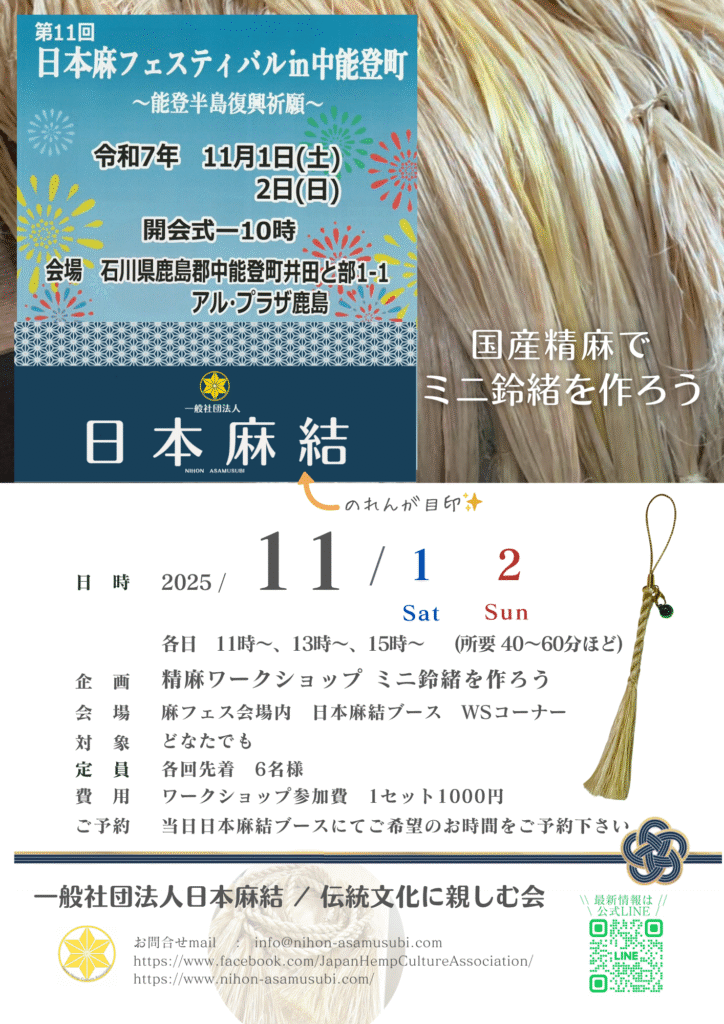 11/1.2 麻フェス会場にて✨精麻ワークショップ✨を開催します